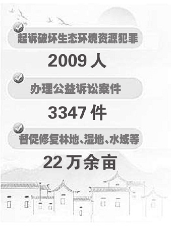 检察日报讯(通讯员 刘荣松)“贯彻长江经济带‘共抓大保护’部署,办理公益诉讼案件3347件,督促修复林地、湿地、水域等22万余亩……”在江西省第十四届人民代表大会第二次会议上,江西省检察机关提交的“生态成绩单”得到人大代表、政协委员的一致肯定。