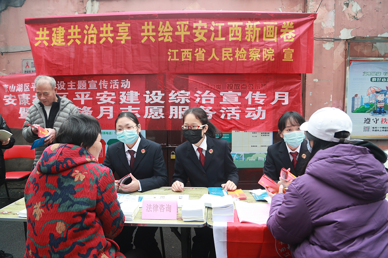 活动中,通过悬挂宣传标语、发放宣传资料、现场宣传讲解等方式,向社区居民群众宣传党的十九届五中全会精神,宣传省委省政府关于平安建设的重大决策部署,宣传《民法典》等法律法规,宣传检察业务工作。业务部门干警志愿者现场接受居民法律咨询,对社区居民提出的关于民事赔偿、债务纠纷、婚姻家庭纠纷等方面的法律问题进行释法答疑,帮助20余户居民解决实际困难和问题。部分干警志愿者还与社区工作人员一同清扫了社区大院和小区楼道,为南昌市文明创建贡献一份力量。