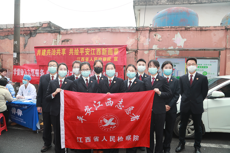机关党委组织13名青年干警志愿者走进共建社区安康社区,开展“共建共治共享,共绘平安江西新画卷”平安建设主题宣传活动暨学雷锋活动月志愿服务活动。
