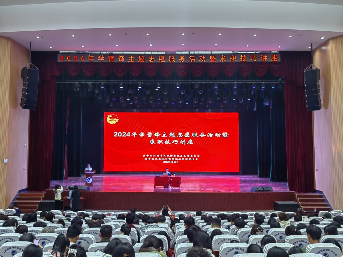 团总支联合江西旅游商贸学院团委开展学雷锋主题志愿服务活动,为学校师生免费开展求职技巧专题讲座,学校400余名师生代表参加活动。